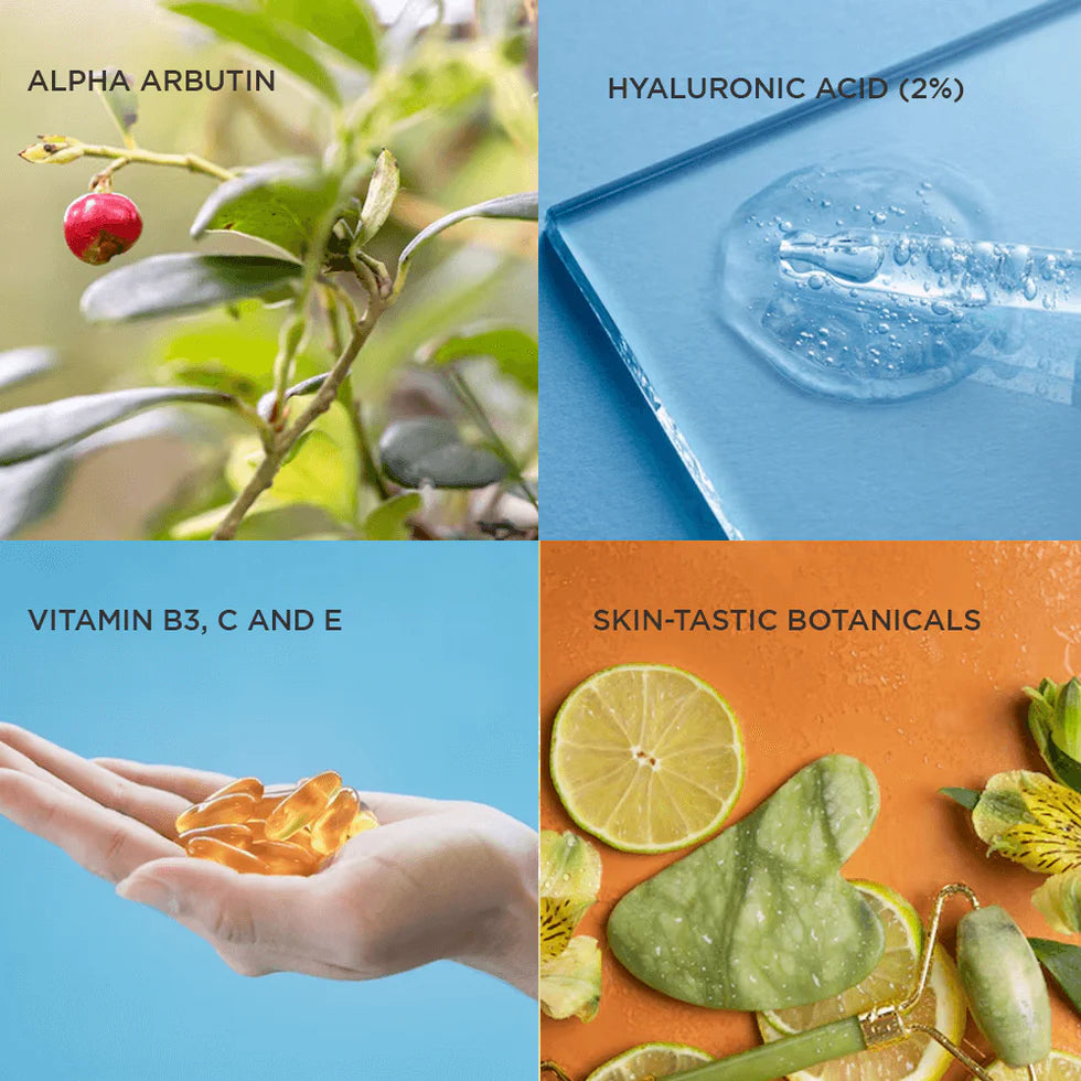 A refined, all-natural face serum designed to support skin through every season. A luxurious, all-natural face serum formulated with high-performance activities that target dullness, dark spots, dryness, and uneven texture. This lightweight elixir blends Swiss-formulated Alpha Arbutin with hydrating Hyaluronic Acid, Vitamins C, and E, and soothing botanicals for a brighter, clearer, and more radiant complexion.
